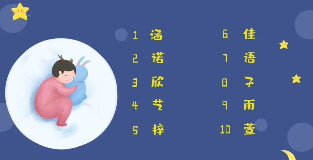 嘉鱼新生女宝名字常用字TOP10(数据来自网络仅供参考)